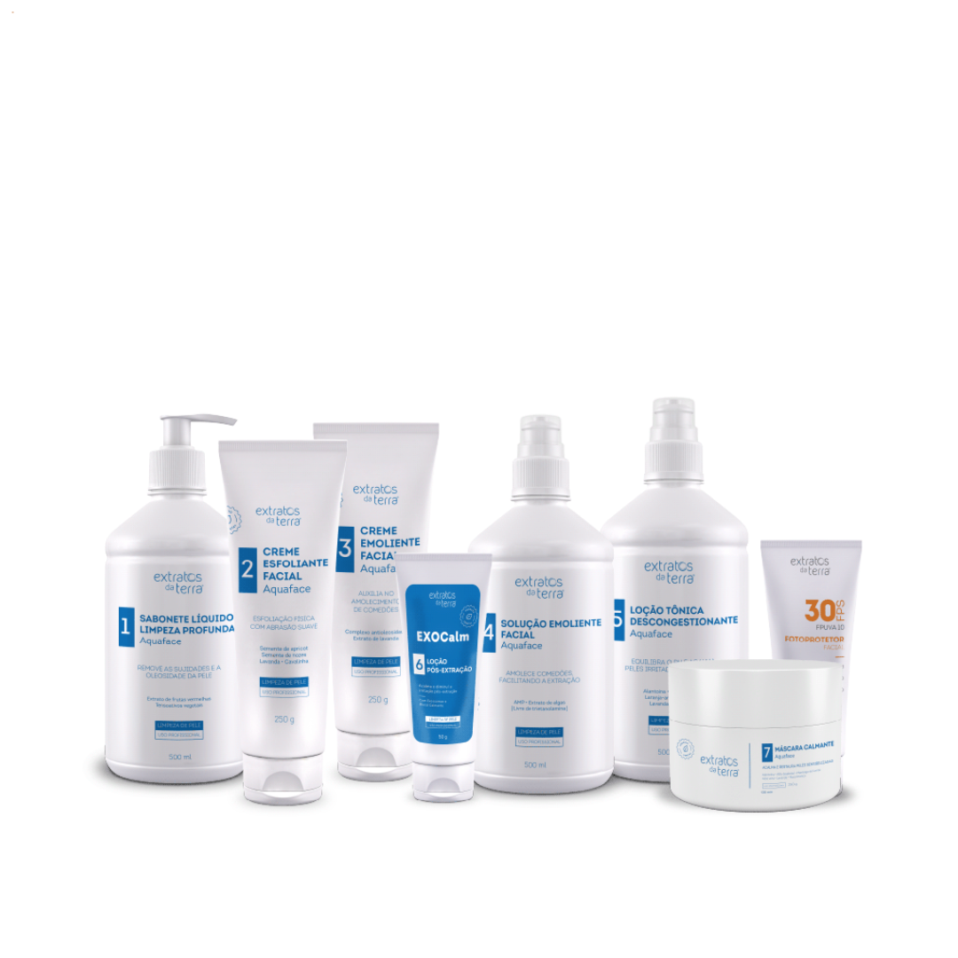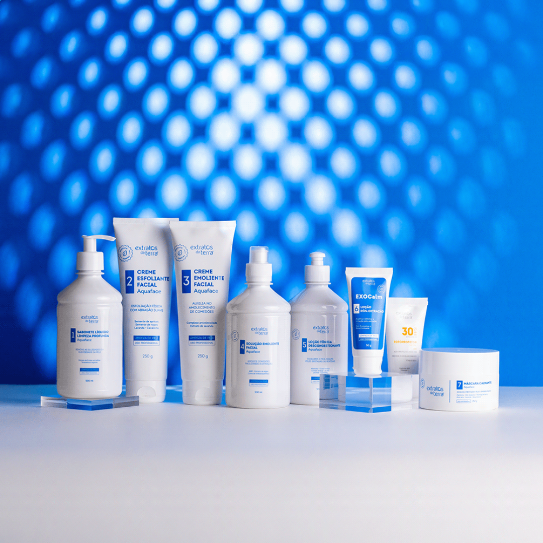 A solução emoliente utilizada é livre de trietanolamina, tornando o protocolo mais seguro e reduzindo o risco de irritações. No lugar, utilizamos o AMP, um emoliente altamente eficaz e menos agressivo para a pele. Outra grande novidade do kit é a loção pós-extração EXOCalm, que acalma e reduz a vermelhidão rapidamente, proporcionando maior conforto ao cliente logo após o procedimento.