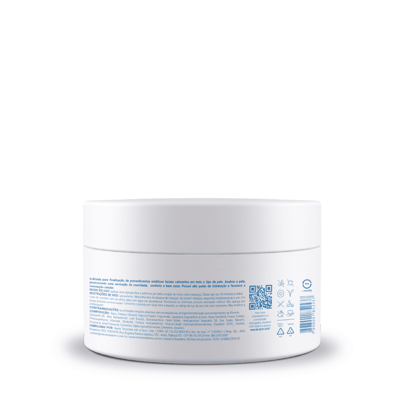 Máscara calmante com ação anti-irritante, anti-inflamatória, cicatrizante e refrescante. Possui alto poder de hidratação e favorece a renovação celular, ajudando a acalmar e restaurar peles sensibilizadas.