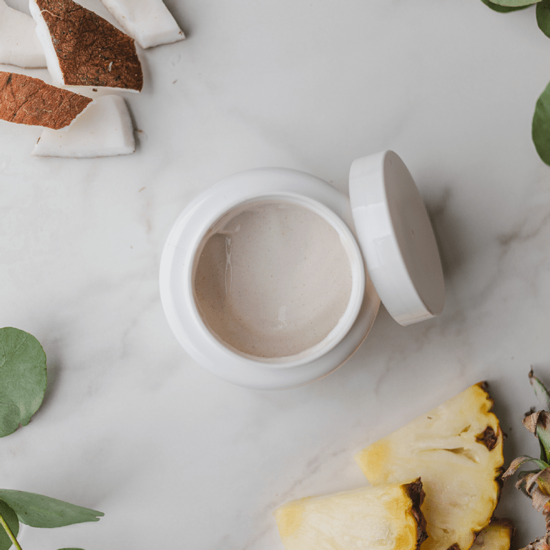 A máscara possui ingredientes biocompatíveis com a pele, como a argila bege e os extratos de coco e de abacaxi. Esses componentes são ricos em vitamina C, pró-vitamina A e vitaminas do complexo B, com forte ação antioxidante e enzimática.