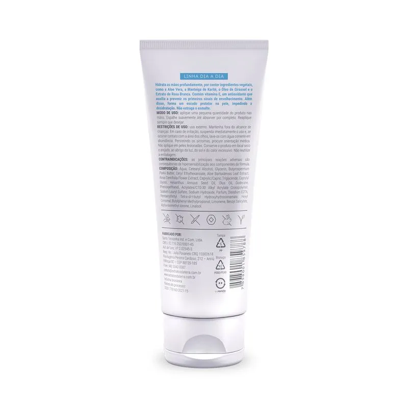 Hidrata as mãos profundamente, por conter ingredientes vegetais, como a Aloe Vera, a Manteiga de Karité, o Óleo de Girassol e o Extrato de Rosa Branca. Contém vitamina E, um antioxidante que auxilia a prevenir os primeiros sinais de envelhecimento. Além disso, forma um escudo protetor na pele, impedindo a desidratação. Não estraga o esmalte.