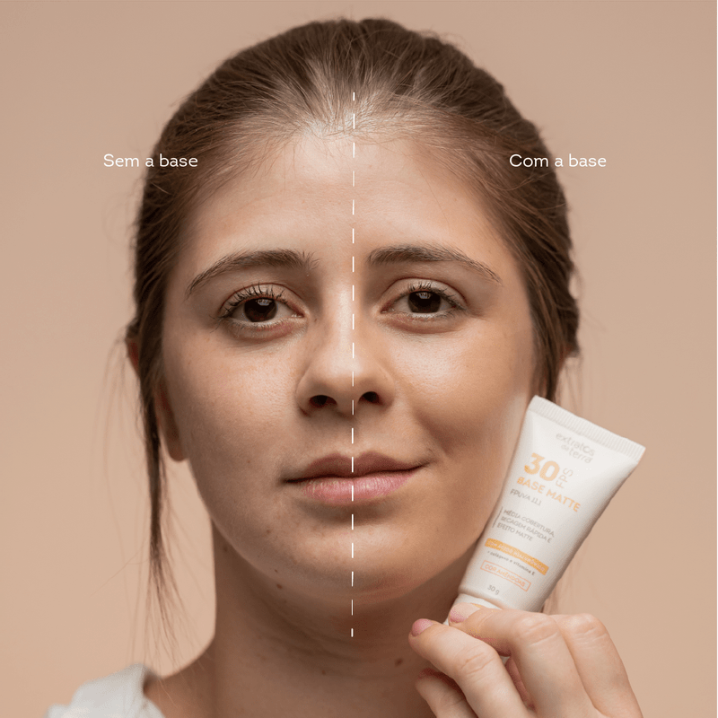 Aplique a base na pele limpa e seca com a ponta dos dedos até conferir uma cobertura uniforme e completa.