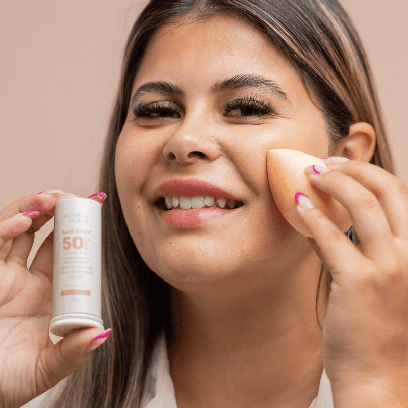 Dica: para uma cobertura mais natural, aplique uma camada da base. Mas se você prefere uma cobertura mais intensa, pode fazer a aplicação por camadas, ou seja, aplique a base mais de uma vez por todo o rosto.